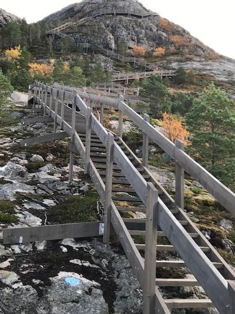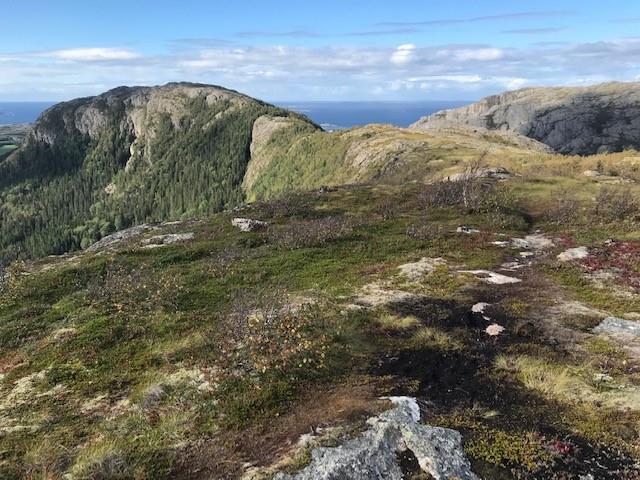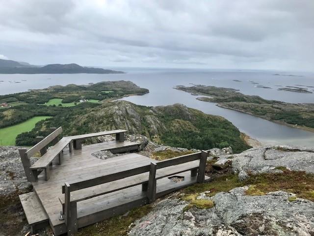 400 m innover fjellet ligger en annen fin sitteplass med utsikt over kulturlandskapet på Brakstad, Skokkjerringas ville tinder, Follahavet, og nabokommunen Nærøysund. Stien vi har startet på er den 5 km lange Eventyrstien som går videre over hele Ramnfjellet, Grønnlihøgda og Dunafjellet, til parkeringa på Svarvan / Dun. Stien er kanskje aller finest å gå fra øst mot vest - mot storhavet.