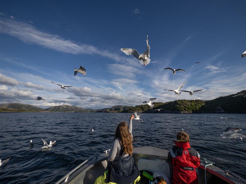 Her ser du nisa som boltrer seg i ren glede over livet eller i lynhurtig jakt etter sild og annen småfisk. Tyvjoen stikker også innom for å få en bit med fisk, denne elegante fuglen er utrolig å oppleve på nært hold.