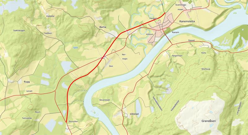 Kjør til Ranemsletta på FV17. Ta av i rundkjøring mot Overhalla kommune og Overhalla varesenter. Parker ved Haugum mølle eller annen offentlig parkering i sentrum. Gå så opp Svalivegen til jernbanen krysser veien. Her begynner stien. Flere parkeringsmuligheter andre steder langs jernbanestien, f.eks. langs veien ved Øysvoll. Vis hensyn til privat bebyggelse.