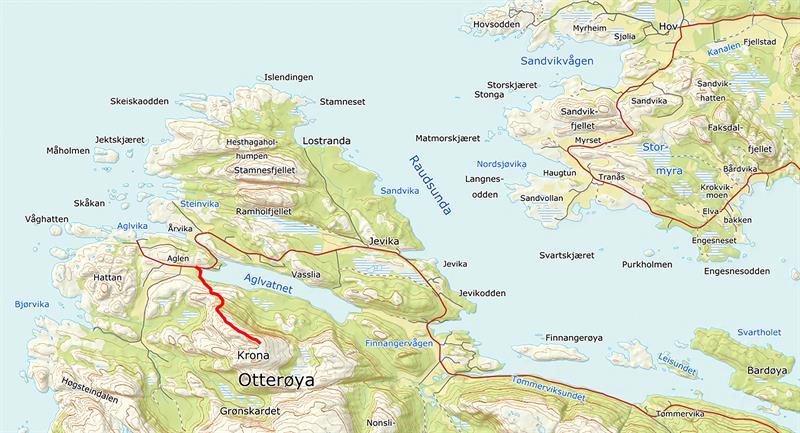 Fra Namsos kjør FV 769 i noen få km, ta så av mot Otterøya og følg skilt mot Aglen. Parker ved turstart: Skiltet tur.Ta hensyn til privat bebyggelse og gårder. Obs! Begrenset parkeringsmuligheter ved turstart. Vi ber om at dere ikke parkerer langs veien. Alternativ tur er Tømmervikfjellet, med større parkering et stykke før du kommer til Aglen.