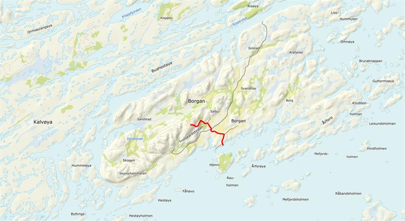 Fra Rørvik kjører du vestover mot Austafjord på Fv770. Ta deretter ferge fra Ramstadlandet til Borgan. Følg vegen til ungdomshuset og parker her.