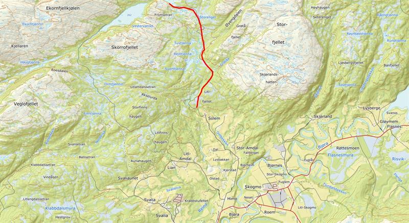 Ønsker du heller å gå fjelltur til fots kan du ta av ved Grøtåbrua på vei inn mot Himovatnet og følge skilting/blå markering til Skjørlandshatten 431 moh. Denne turen blir ca. 6 km tur-retur fra parkering.