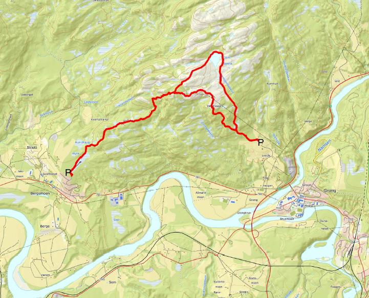 Adkomst: Fra E6 ta av ca. 400 m sør for Mediå bru, mot Namsos. Ta av første veg til høyre (100 m etter krysset). Ta deretter til venstre skiltet Grong gård. I første kryss, ta til venstre, i neste kryss ta til høyre mot Leksås og kjør til enden av vegen, ca 1 km, der det er parkering. En kan også gå turen fra Bergsmo, ta av fra E6 mot Namsos (RV 760), ta av til høyre ved Grong dyreklinikk på Bergsmo, så til høyre etter Coop Marked, fortsett vegen helt opp til skytterbanen. Parker bilen her å gå vegen innover 300 m, der er starttavla plassert.