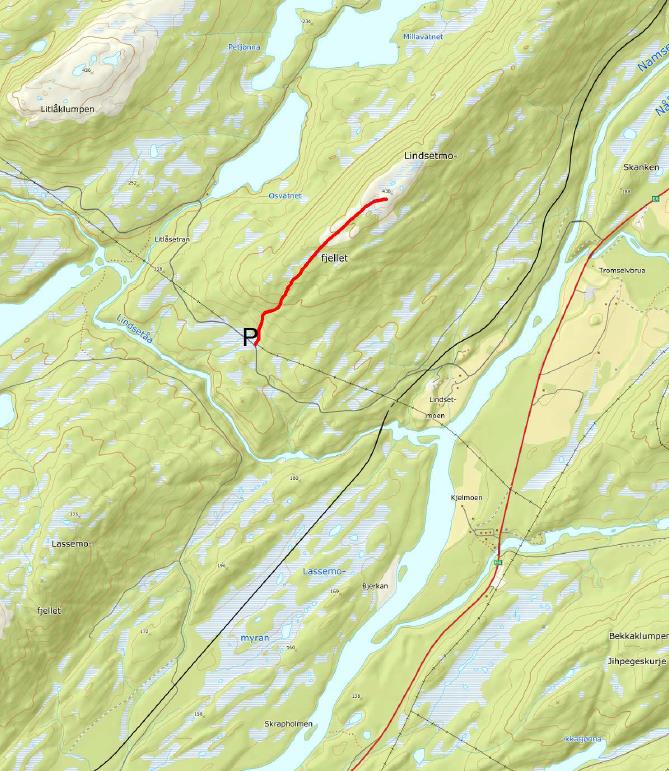 Lindsetmofjellet er et enkelt og familievennlig turmål med stigning på ca. 200 høydemeter og 3 km tur-retur. Turen går langs en gammel traktorvei som er oppkjørt helt opp til linken for mobilmast. Når du kommer opp på fjellet får du god utsikt. Turen går i variert terreng, først med skog og deretter litt myrlendt terreng på slutten. I Osvatnet har du gode muligheter for å få fin fisk, men husk fiskekort (Namsskogankortet).