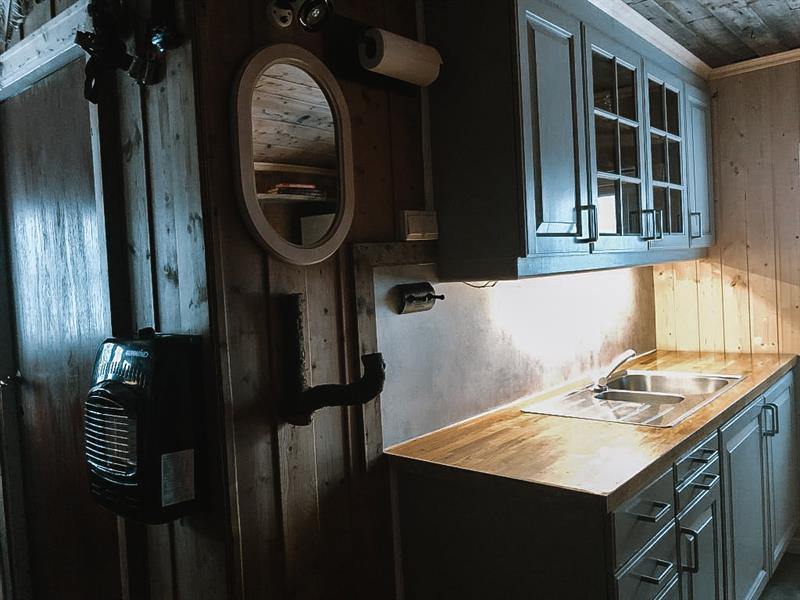 Dere tar meg egen mat og drikke. Det er mye fisk å få, så om dere vil legge inn litt fiskeinnsats så kan dere beregne å spise ferskfisk. Bålpanne med rist finnes for matlaging ute på verandaen. Både gassbluss og komfyr inne i hytta. Det er mulig å bestille lokalmatkasse til hytta,