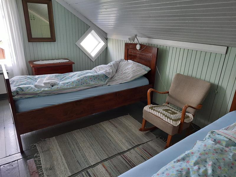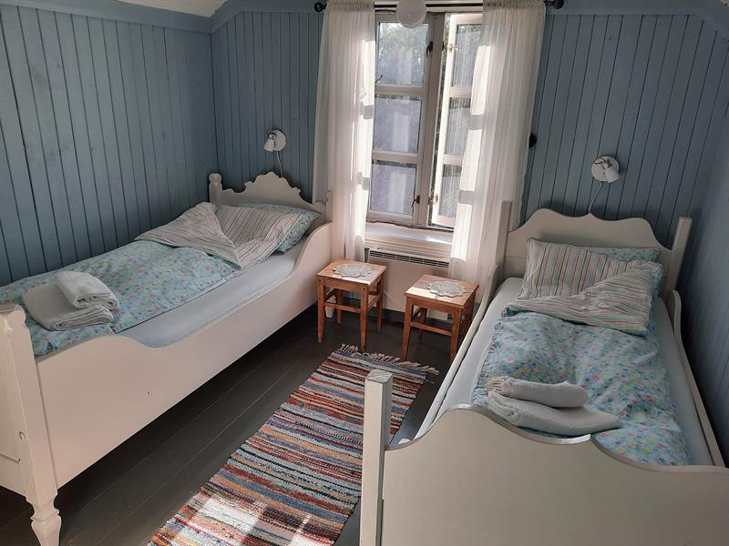 Hovedhuset har 2 soverom med til sammen 4 sengeplasser, kjøkken, bad/WC og 2 små stuer.