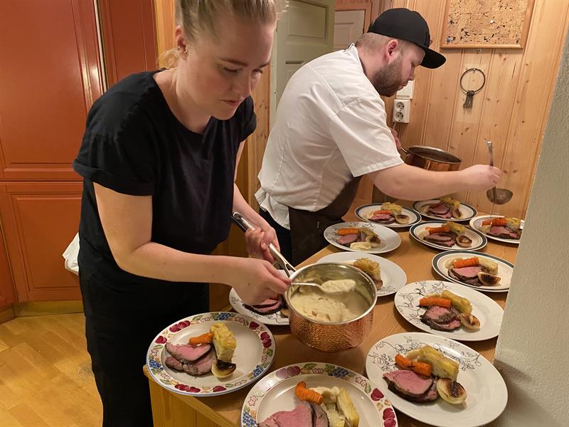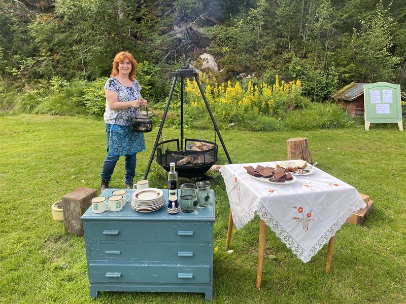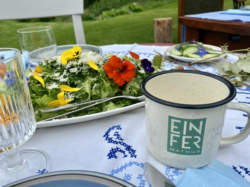Hos Einfer Mathus får du kjempegod mat som er laget fra bunnen - med kjærlighet til mat og de beste smakene. Vi bestreber oss på å bruke lokale råvarer så langt det lar seg gjøre, noe av det vi serverer har vi sanket i skogen rundt oss, eller kjøpt hos lokale bønder og produsenter. Gjennom et sosialt entreprenørskaps-prosjekt er det deltakere fra flere steder i verden på Einfer Mathus, som er med på å drive kaféen, samtidig som de jobber mot et mål om å starte sin egen bedrift. Så om du får en kake med ukjent smak til bålkaffen, eller en ny vri på kjøttsuppa, så kan det være en bestemor-oppskrift fra en annen del av verden som er grunnen til det.